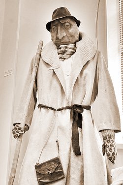 Выглядит это так: вот сетосский мужик в шляпе и в традиционном кафтане торгует картошкой в мешке и горшками собственного изготовления. Все предметы, включая мешок – подлинные, а сам мужик – фигура-манекен с живым и выразительным лицом, портретом, написанным с натуры художницей Марией Туриной. Прообраз этого персонажа известен, это Коля Паюстик, работящий и немногословный крестьянин, уехавший из Сигово вместе со своим народом. Этого человека нет в его родной деревне.