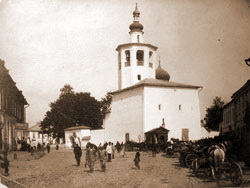 | Храм св. Козмы и Дамиана на Запсковье с Примостья, построенный в 1462-63 гг. Фото М. И. Герасимова. Открытка начала XX в. |