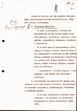 Тогда же президент СССР М. С. Горбачев передал президенту Польши В. Ярузельскому списки расстрелянных польских военнопленных (формально это были списки-предписания на отправку этапов из Козельского и Осташковского лагерей в распоряжение УНКВД по Смоленской и Калининской областям, а также список учетных дел убывших военнопленных Старобельского лагеря) и некоторые другие документы НКВД.