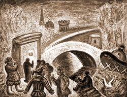 Творческое объединение (а скорее – широкое движение художников) «Митьки» существует уже более четверти века. В наши дни оно целостно не столько общей эстетикой (пониманием красоты и отношением к отображаемому миру) сколько, в первую очередь, общим предметом отображения. В предыдущей статье, посвящённой «Митькам» [ 1 ], мне пришлось уже говорить о Санкт-Петербурге как о центральном лирическом герое всего их творчества. Город остаётся для многообразных авторов универсальным «вторым Я» – тем зеркалом, в которое неустанно в поисках самих себя глядятся художники.