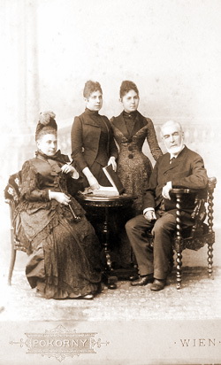 | Стоят: Е. И. Сорокина, А. А. Яхонтова, сидят: Н. Н. Ильман, А. Н. Яхонтов. Вена, 1889 год. |