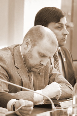 | Два руководителя райпо: Невельского – Михаил Мурашкин и Великолукского – Алексей Федоров предложили в несколько раз увеличить штраф за несанкционированную уличную торговлю «от белорусов», но другие депутаты защитили «псковских бабушек». Фото: Александр Сидоренко |